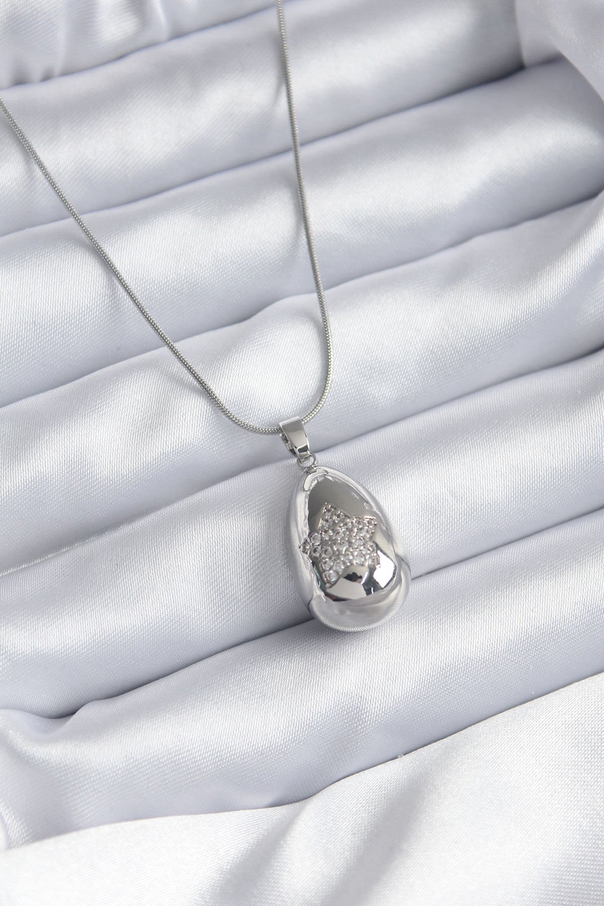 316L Çelik Gümüş Renk Damla Model Yıldız İşleme Zirkon Taş Detay Kadın Kolye