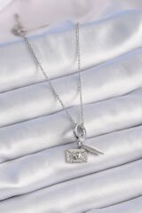 316L Çelik Gümüş Renk Kalp Detay Mektup Figür Charm Model Kadın Kolye