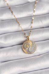 316L Çelik Mix Renk Zincir Zirkon Taşlı Gün Doğumu/Batımı Madalyon Model Kadın Kolye