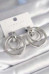 Pirinç Gümüş Renk Halka Model Kadın Küpe